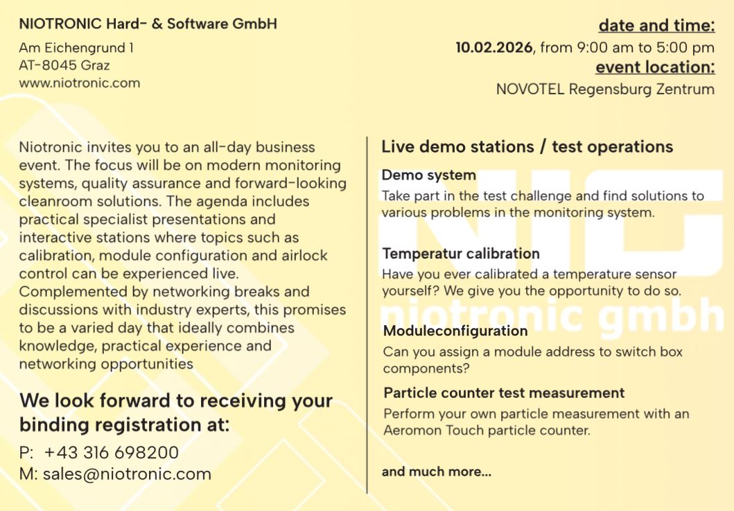 We are excited to announce that our Cleanroom Event 2026 will take place on February 10th, 2026, in Regensburg!