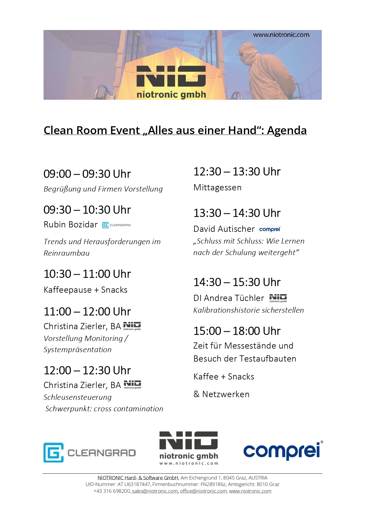 Mit großer Freude präsentieren wir die Agenda für unser Clean Room Event am 25.02.2025!